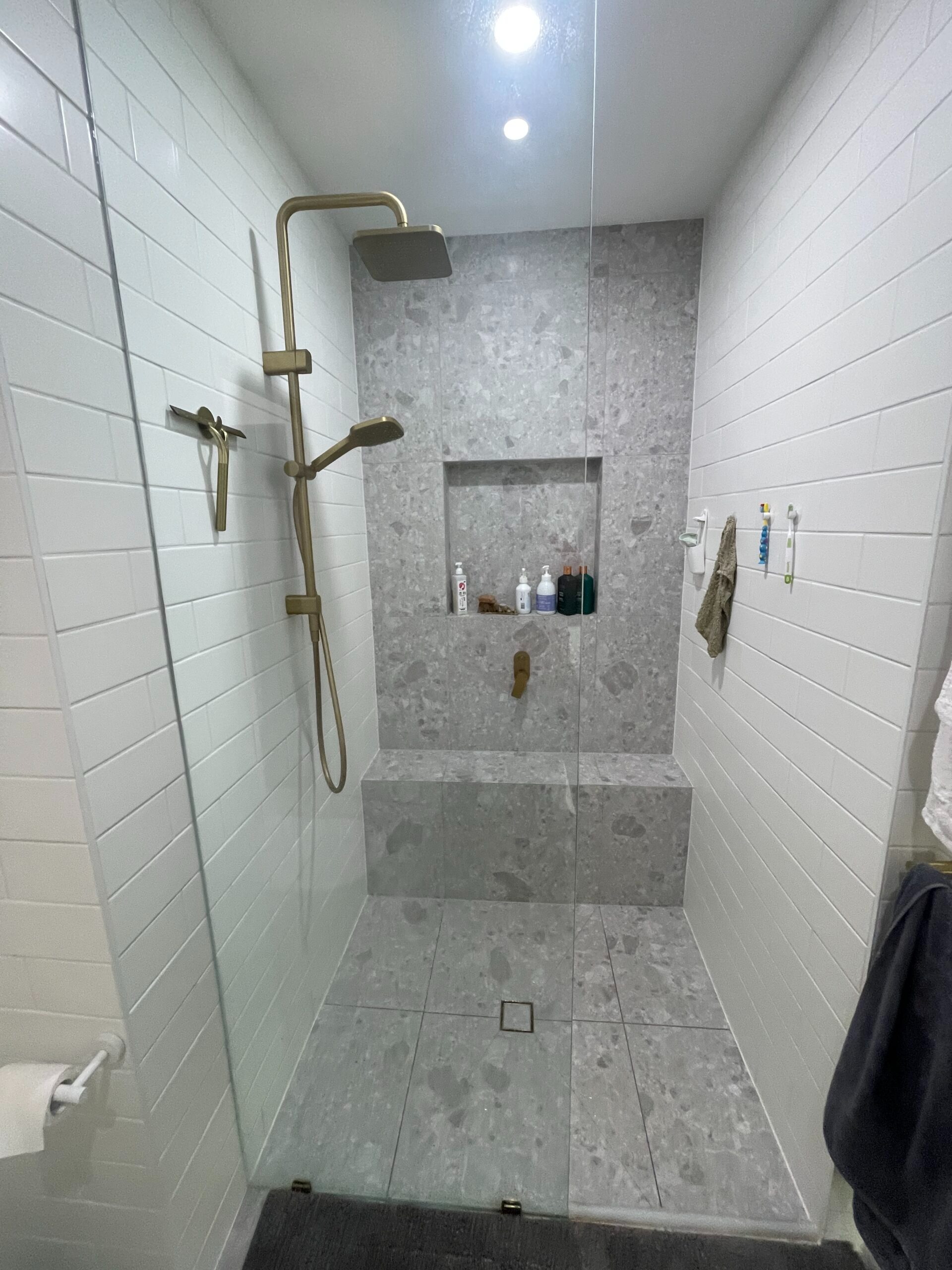 - Plan for a reachable towel rail within arm’s reach